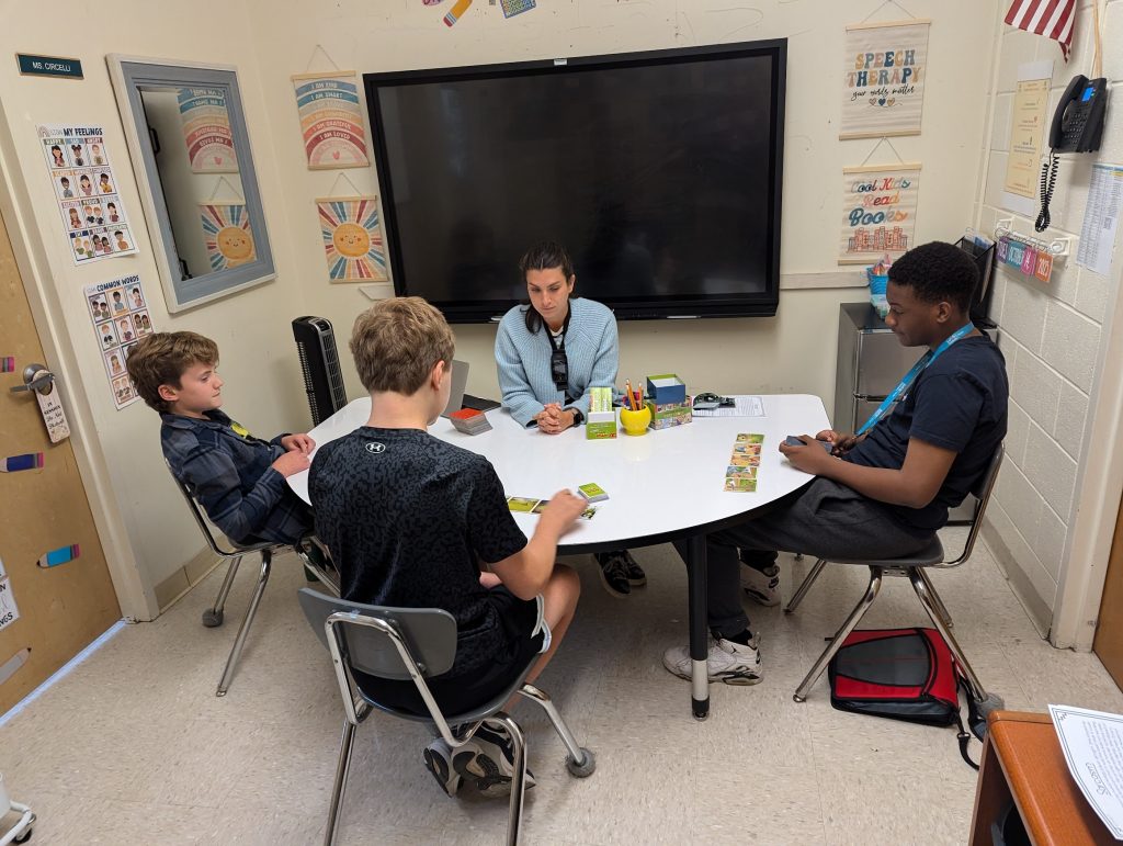 The speech department collaborates with teachers, administrators, and parents to generalize speech and language goals outside of the therapy room. Social language skills programs are run daily during lunch by the speech and counseling department. Students are taught a variety of social skills targeting perspective taking, conversational skills, friendship, problem-solving, and overall social competence. The speech department also uses a variety of highly specialized programs, including Social Thinking®, HearBuilders®, and VoicePro®, to supplement speech instruction. In addition to providing therapy to meet students’ speech and language goals, our mission is to ensure that each child develops speech and language skills to facilitate personal, social, and intellectual growth inside and outside of the classroom.